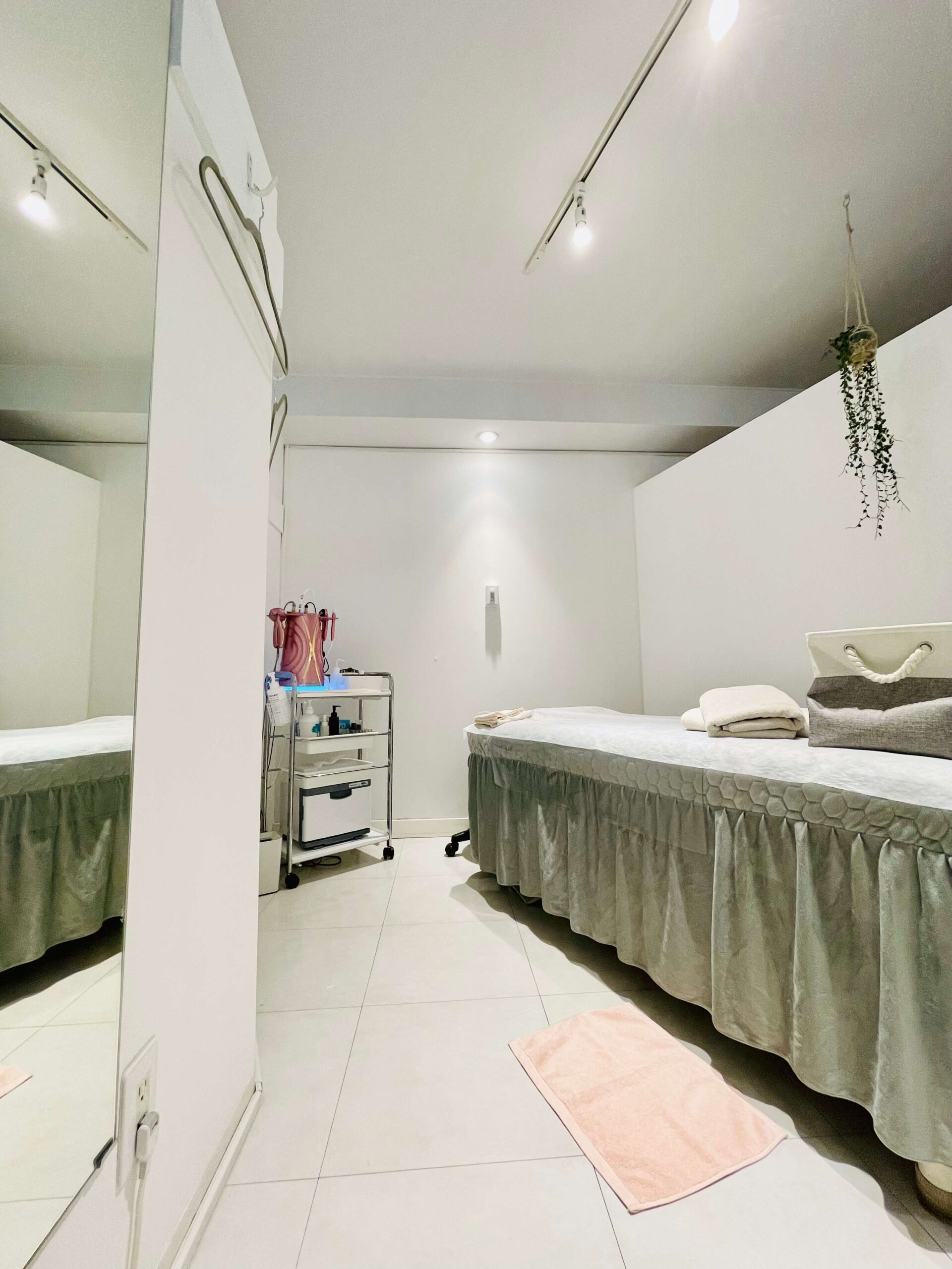 フェムケア施術ルーム。Emotion+(エモーションプラス)はワゴンの上に乗るサイズで、女性1人でも持てる軽さ。お部屋の移動もラク。